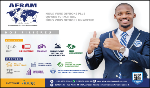 AFRAM est un établissement d’enseignement supérieur privé au Gabon, engagé dans la formation de cadres compétents à travers des filières adaptées aux besoins du marché local et international. Il met l’accent sur la qualité académique et l’insertion professionnelle.